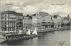 1. a b Vergleiche etwa die postalische Datierung von 1901 auf der Adressseite der mit der Nummer 377 als Mondscheinkarte fortlaufend nummerierten Ansichtskarte aus dem Hamburger Verlag. Eine fotografische Ansichtskarte mit der Lübecker Synagoge, Nr. 3252, abgestempelt am 10. Juni 1900, in vintage-germany.de.