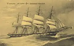 Viermaster-Segelschiff; Kunstdruck nach einer Zeichnung eines unidentifizierten Künstlers