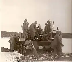 Als Kampfbeladung wurden zwei Schuss auf dem Geschütz, weitere 30 Schuss auf dem LKW (s. o.) mitgeführt.[5] Nicht an der Wanne verzurrtes Gerät wurde in Gerätekisten am Erdsporn hängend mitgeführt.