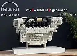 | Angaben zu den MAN Schiffsmotoren auf www.man-engines.com, abgerufen am 14. April 2012., zu V12X auf www.man.eu, abgerufen am 9. September 2022. und MARINE High speed propulsion engines, abgerufen am 27. August 2024. | ||||||