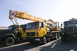 ![]() Ein MAZ-6312 mit Ladekran 130 km nordöstlich von St. Petersburg, 2014