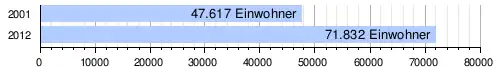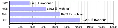 Das urbane Gemeindegebiet hatte 12.220 Einwohner in 1733 Haushalten bei der Volkszählung 2012, 8763 Einwohner in 1382 Haushalten bei der Volkszählung 2001[8] und 6303 Einwohner in 1116 Haushalten bei der Volkszählung 1988.[9] Bei der Volkszählung 1977 waren es 3453 Einwohner.[10]