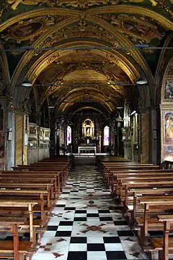 Am 10. Januar 1514 befreite Papst Leo X. den Berg der Wallfahrtsstätte von jeder Dienstbarkeit und Gerichtsbarkeit.[3] 1522 erhielten die Wände eine Reihe von Fresken, darunter dasjenige der Nordwand des Chors mit der Madonna auf dem Thron mit Kind, das Domenico Pezzi aus Puria genannt «Furgnicus»[4] zugeschrieben werden kann, einem Maler, der zwischen der Gegend von Lugano und Genua pendelte und in der Klosterkirche Santa Maria degli Angioli in Lugano, in der Pfarrkirche Santa Maria del Sasso in Morcote, im Laubengang vor der Pfarrkirche von Villa Luganese, in der Kirche San Biagio von Bellinzona-Ravecchia und in Gravedona in der Kirche Santa Maria delle Grazie nachgewiesen ist. An der Südwand des Kirchenschiffs findet sich Christus und die Toragelehrten, das den Gebrüdern della Rovere genannt Fiammenghini zugeschrieben wird. In dieser Kirche wird einige Jahre später Fra Bartolomeo begraben werden. 1814 wird die Kirche um etwa die Hälfte reduziert, um den Platz der Prozessionen zu schaffen.