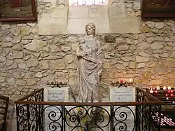 Die Skulptur aus weißem Stein ist 1,50 Meter hoch. Sie wurden aus einem einzigen Block geschaffen, Reste einer farbigen Fassung sind noch vorhanden.