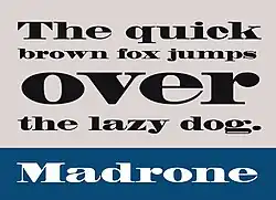 Madrone ist eine Fat-Face-Schrift von Adobe, die 1991 auf den Markt gebracht wurde. Der Entwurf geht zurück auf alte Holzletter-Schriften aus dem 19. Jahrhundert. Digitalisierung und Ausgestaltung erfolgten durch die Typedesignerin Barbara Lind. Die Veröffentlichung erfolgte im Rahmen der Kollektion Wood Type Revival – einer Anfang der 1990er Jahre herausgebrachten Reihe mit Neuauflagen historischer Schriften. Ebenso wie bei der Blackoak, einer Deco-Egyptienne, die ebenfalls auf historische Vorlagen zurückgeht und gleichfalls Bestandteil dieser Schriften-Edition ist, sticht bei der Madrone die extrem breite Zeichengestaltung hervor.