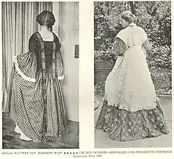 - Weiß-rotes Festkleid mit Halsschmuck, 1908[18][19]