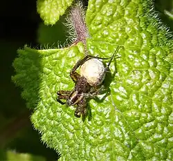 - ↑ a b c Heiko Bellmann: Der Kosmos Spinnenführer. Über 400 Arten Europas. Kosmos Naturführer, Kosmos (Franckh-Kosmos), 2. Auflage, 2016, S. 166, ISBN 978-3-440-14895-2.