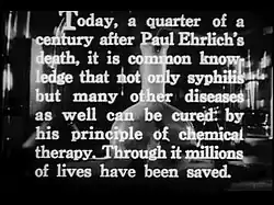 Der Film endet mit einem Nachspann, der Ehrlichs Arbeit würdigt. Ein Vierteljahrhundert nach Ehrlichs Tod seien nicht nur die Syphilis, sondern viele andere Krankheiten mit der von Ehrlich begründeten Chemotherapie behandelbar geworden. Millionen Menschenleben seien durch Paul Ehrlich gerettet worden.