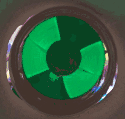 Komplett runde Anzeigen sind sog. echte Magische Augen: sie zeigten kreuzförmig vier Kreissektoren an, deren Winkel sich ändert (z. B. EM35). Bei schwacher Ansteuerung ist ein X ähnlich einem Andreaskreuz sichtbar, bei Vollansteuerung ein breites Kreuz bzw. nahezu ein Vollkreis. Hier existieren Varianten (z. B. EM11, EM34), die zwei Leuchtwinkel unterschiedlicher Empfindlichkeit aufweisen. So lässt sich der Empfänger mit dem empfindlicheren Leuchtwinkel auf schwache Sender einwandfrei abstimmen, während mit dem unempfindlicheren Leuchtwinkel auf starke Sender abgestimmt werden kann (hierbei erscheint der empfindlichere Teil schon völlig ausgesteuert). Technisch wurde dies mit unterschiedlicher Steilheit der pro veränderlichem Leuchtwinkel integrierten Verstärkertrioden realisiert.