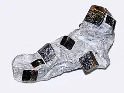 - ↑ Friedrich Klockmann: Klockmanns Lehrbuch der Mineralogie. Hrsg.: Paul Ramdohr, Hugo Strunz. 16. Auflage. Enke, Stuttgart 1978, ISBN 3-432-82986-8, S. 569 (Erstausgabe: 1891).