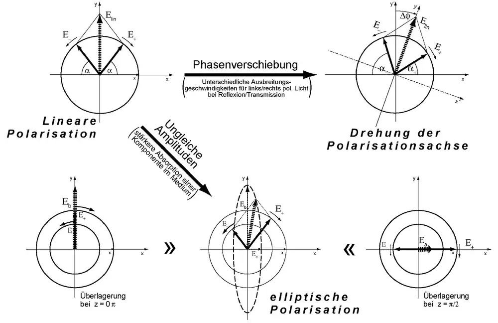 Beide Informationen werden im komplexen Kerr-Winkel wiedergegeben: