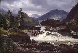 - „Norwegische Landschaft“, bez.: „Valdres(?)“, 1855; Öl/Lwd., 84 × 123 cm