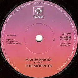 1977 erschien international das Album The Muppet Show, das den Titel Mahna Mahna enthielt, nebst einer ausgekoppelten Single Mah na Mah na.[32] Die ursprüngliche Fassung von Piero Umiliani wurde in Großbritannien ein Hit und errang im Mai 1977 Platz 8 der Hitparade.[33] Die LP mit der Muppet-Version des Songs landete am 25. Juni 1977 auf Platz 1 der britischen Charts und löste damit das Beatles-Album Live at the Hollywood Bowl ab.[34]