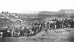 Wie schon während des Burenkrieges forderte Gandhi am 17. März seine Landsleute auf, eine Sanitätereinheit zu bilden. Er rückte mit nur 24 Mann an und half Verwundeten beider Seiten. Gandhi war von der Gewalt der militärisch weit überlegenen Briten bestürzt, die den Aufstand im Juli 1906 brutal niederschlugen und die Überlebenden sowie sympathisierende Zulu inhaftierten oder deportierten.[54]