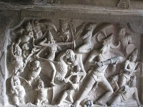 In der klassischen indischen Bildhauerkunst ist Mahishasura keiner Einzeldarstellung würdig – gezeigt wird ausschließlich der Sieg Durgas über Mahishasura, der in Gestalt eines getöteten Büffels erscheint. Oft nimmt er kurz vor seinem Ende nochmals menschliche Gestalt an und bittet die Göttin um Gnade, die sie ihm jedoch nicht gewährt.