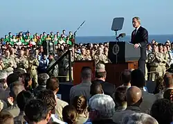 - Pazifischer Ozean: In einem medienwirksamen Auftritt landet US-Präsident George W. Bush an Bord einer S-3B Viking auf dem Flugzeugträger Abraham Lincoln, der nach dem Einsatz im Persischen Golf nach Kalifornien zurückgekehrt war. Auf dem Deck erklärt er den amerikanischen Feldzug im Irak für beendet (englisch „Mission accomplished“), ungeachtet der anhaltend schlechten Sicherheitslage.