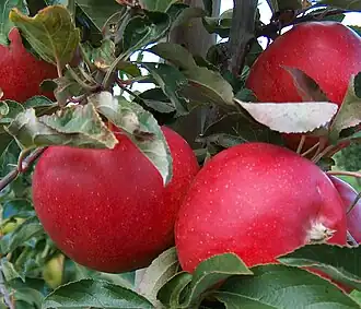 Die mittelgroßen Früchte sind kräftig rot gefärbt.[2] Die durchschnittliche Farbdeckung beträgt 78 %.[3]