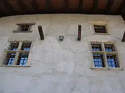 Auch wenn das Gebäude aus dem 14. oder 15. Jahrhundert stammt, fallen spätgotische Elemente auf, darunter die kreuzförmigen Fenster aus dem 16. Jahrhundert, verkleidet und gerahmt in Stein aus Villeneuve.[6]