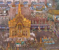 Darstellungen der Hybrid-Wesen finden sich noch heute in vielen thailändischen Tempeln (Wat), am bekanntesten sind die goldenen Statuen auf der Oberen Terrasse des Wat Phra Kaeo. Überlebensgroße Nachbildungen wurden früher in den Umzügen mitgeführt, welche königliche Urnen zum Verbrennungsplatz geleiteten. Auf dem Verbrennungsplatz wurde ein Katafalk nach dem Vorbild des Meru errichtet.