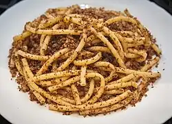 Makarony po-flotski (russisch макароны по-флотски ‚Nudeln nach Art der Marine‘) ist ein russisches Gericht aus gekochten Nudeln (typischerweise Makkaroni, Bucatini, Penne oder Fusilli), die mit geschmortem Hackfleisch (meist Rind- oder Schweinefleisch) und gebratenen Zwiebeln gemischt und mit Salz und schwarzem Pfeffer gewürzt sind.[1][2] Ursprünglich bei der Marine serviert, wurde das Gericht in Russland wegen seiner Einfachheit, geringen Kosten und schnellen Zubereitung sehr beliebt. Makarony po-flotski wurde nach dem Zweiten Weltkrieg während der Zeiten der Armut in der Sowjetunion sehr populär.