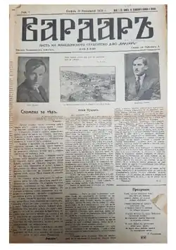 Die Makedonische Studentenvereinigung „Vardar“ (bulgarisch Македонско студентско дружество „Вардар“ Makedonsko studentsko druschestwo „Wardar“) ist eine im Jahr 1920 gegründete Organisation der Studenten der Universität Sofia im damaligen Königreich Bulgarien. Bei den Studenten handelte es sich hauptsächlich um bulgarische Flüchtlinge aus der Region Makedonien. Sie wurde als Nachfolgeorganisation der Makedonischen Studentenvereinigung Goze Deltschew gegründet und unterhielt enge Verbindungen zur Inneren Makedonischen Revolutionären Organisation (IMRO), bis beide nach dem Putsch von 1934 verboten wurden.[1] Der Name der Studentenvereinigung leitet sich vom Fluss Vardar ab, der durch Makedonien in die Ägäis fließt.[2]