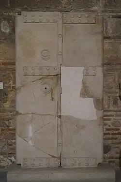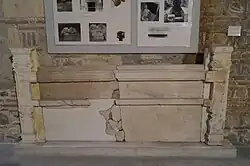Trotzdem machte man einige bedeutende Funde. So fand man in der Vorkammer die zerbrochene, zweiflügelige Marmortür und Teile einer Totenbahre aus Marmor. Auf dem linken Flügel der Marmortür ist eine Meerjungfrau abgebildet und darunter gibt es eine Bohrung, an der vermutlich die Riegelschnur befestigt war. Die Verzierungen auf der Bahre erinnern an die Dekoration der Elfenbeinbahre aus dem Grab Philipps II. in Vergina. Außerdem fand man einen Marmorblock mit der Inschrift ΑΡΘΜΙΟΣ ΛΑΙ[...]. Die Funde sind im Archäologischen Museum von Serres ausgestellt.