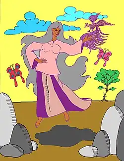 Eines Nachmittags wanderte ein Jäger durch ihr Reich. Als er die Schönheit sah, verliebte er sich sofort in sie und sie erwiderte seine Gefühle. Sie trafen sich daraufhin jeden Tag und unterhielten sich miteinander und sie versprachen, sich für alle Zeit zu lieben. Eines Tages wartete Maria wieder auf ihn, doch er tauchte nicht auf und auch die weiteren Tage und Monate kam er nicht mehr bei ihr vorbei. Dann fand sie heraus, dass er eine menschliche Frau gefunden und geheiratet hatte, woraufhin sie sehr enttäuscht und traurig war. Sie war tief gekränkt und realisierte, dass den Menschen nicht zu trauen war, da sie sich von ihr unterschieden und alsbald fühlte sie sich von ihnen ausgenutzt. Ihre Trauer und Frustration wandelte sich in Wut und sie verweigerte fortan den Bäumen das Wachsen der Früchte. Die Tiere und Vögel zogen sich zurück und im See waren in der Folge kaum mehr Fischen zu finden. Die Menschen sahen sie seither nur selten und wenn, dann begegnete man ihr nur in mondlosen Nächten.[2]
