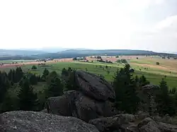Der Eduardova skála (Eduardfelsen), abseits von Touristenpfaden gelegen, liegt mit einer Höhe von rund 900 Metern inmitten eines kleinen Wäldchens. Von dessen Spitze bietet sich ein Ausblick über das Erzgebirge und auf die Stadt Hora Svaté Kateřiny.