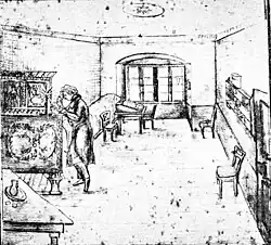 Beginn des Maler Nolten im November 1828 in Stuttgart, wo Mörike sich als freier Schriftsteller und Journalist in der Sophienstraße niederließ.[37] Weiterarbeit während der Zeit als Pfarrverweser und Vikar in Pflummern, Plattenhardt (1829) Owen (1829/1830), Eltingen (1831) und Ochsenwang (1832). Am 23. Juli 1830 lag der Roman im Manuskript vor, in Ochsenwang nahm Mörike die letzten Korrekturen vor, sein auf dem Hohen Asperg inhaftierter Bruder half ihm dabei. Der Autor plante für die Veröffentlichung ein Taschenbuch ohne Jahresschild und versuchte dafür den Berliner Buchhändler Reiner als Verleger zu gewinnen. Schließlich erschien der Roman 1832 in Stuttgart: Eduard Mörike: Maler Nolten. Novelle in zwei Theilen. Mit einer Musikbeilage. Emanuel Schweizerbart’s Verlagshandlung, Stuttgart 1832. 324 Seiten, eine Seite Verbesserungen (Bd. 1: Digitalisat und Volltext im Deutschen Textarchiv, Bd. 2: Digitalisat und Volltext im Deutschen Textarchiv)
