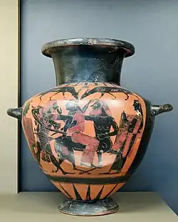 - John Boardman: Schwarzfigurige Vasen aus Athen. Ein Handbuch (= Kulturgeschichte der Antiken Welt. Bd. 1). Philipp von Zabern, Mainz 1977, ISBN 3-8053-0233-9, S. 59.
