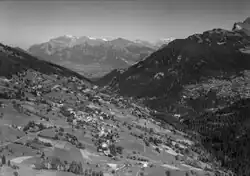 ![]() Rechts im Hintergrund Maladers, rechts unten der Turm der Ruine der Burg Strassberg