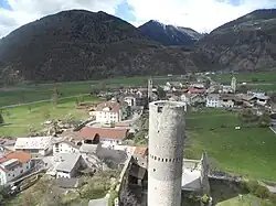 Romanischer Turm der St.-Johann-Kirche in Mals