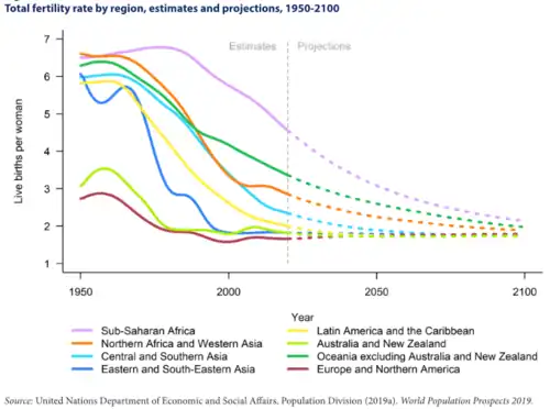 Gesamtfertilitätsrate (Welt 1950–2019 real und Entwicklung, geschätzt von UN, Population Division) – Total Fertility Rate