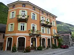 - Die Casa Canzali in der Fraktion Rongie mit Reichsadler und Viscontiswappen auf der Fassade[23]