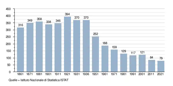 Die Gemeinde zählt zu den kleinsten Gemeinden von Italien, gemessen an ihrer Einwohnerzahl.