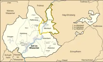 - ↑ Kirchen und Kapellen in Zell im Wiesental, aufgerufen am 15. Juli 2019