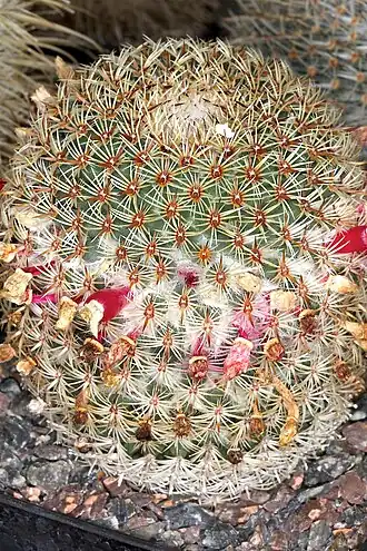 - ↑ John William Pilbeam: Mammillaria – The Cactus File Handbook. cactusfile.com, Southampton 1999, ISBN 0-9528302-8-0, S. 143.