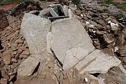 Der steile Grabhügel (Mamoa) hat einen Durchmesser von etwa 20,0 m. Im Hügel bilden acht bis zur Hügelkuppe reichende Tragsteine, die polygonale Kammer einer Anta ohne den entfernten Deckstein. Ein Gang scheint nicht vorhanden gewesen zu sein. Bemerkenswert ist die hervorgehobene Lage im Vergleich zu ursprünglich weiteren neun Megalithanlagen südlich der Straße. Heute sind noch die Reste von vier Gräbern auszumachen.