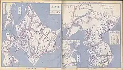 Karte der japanischen Staatsbahn von Hokkaido, Chosen, Karahuto und Mandschuko