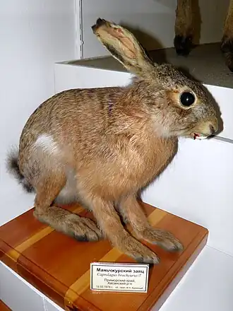 Mandschurischer Hase (Lepus mandshuricus), ausgestopftes Exemplar | ||||||||||||