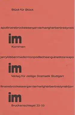 - ↑ Verlag für zeitige Dramatik, Stück für Stück im Kommen, Stuttgart o. J. (1966/1967; Flyer)