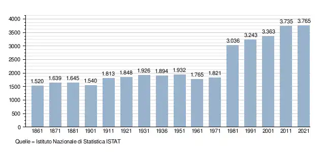 - ↑ Bilancio demografico e popolazione residente per sesso al 31 dicembre 2024. ISTAT. (Bevölkerungsstatistiken des Istituto Nazionale di Statistica, Stand 31. Dezember 2024).
