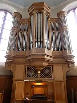 II/P | 15 | das Gehäuse der Vorgängerorgel von Walcker wurde in den Neubau integriert → Orgel | |
