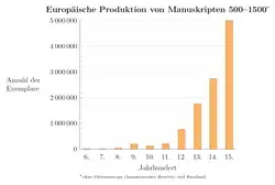 Die europäische Produktion von Manuskripten stieg im Hoch- und Spätmittelalter steil an (geschätzte Zahlen).[4]