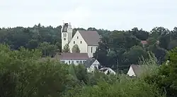 - Die katholische Kirche St. Nikolaus wurde 1795 erbaut und liegt über dem Dorf auf dem Hochflächenrand. Hier stand schon ein früher Vorgängerbau.