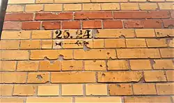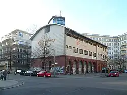 Unter der früheren Hausnummer 39 (→ Marchlewskistraße 6) steht die 1884 eröffnete ehemalige Feuerwache Friedrichshain Wache Memel.[53] Der Gebäudekomplex wurde nach Plänen von Hermann Blankenstein für die Berufsfeuerwehr Friedrichshain errichtet. Es war ein dreigeschossiger Bau mit roten Verblendklinkern und Terrakottareliefs. Für die Ausfahrten der Feuerwehr waren vier Tore im Stil der Neorenaissance vorhanden. Nach dem Zweiten Weltkrieg war nur noch das Erdgeschoss erhalten. Das Haus erhielt 1946 ein Notdach[54] und wurde bis 1956 weiter für die Feuerwehr genutzt. Die darauf in das neue Gebäude umzog.