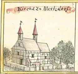 Das Dorf wurde 1291 erstmals als Martini villa erwähnt. Der Ortsname leitet sich vom Gründer des Ortes ab, das Dorf des Martins. Weitere Erwähnungen des Dorfes erfolgten 1343 als Mertinsdorf sowie 1396 als Mertynsdorf.[2]