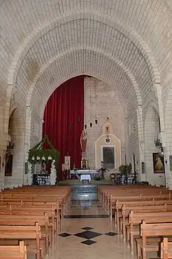 Es handelt sich um eine einschiffige neoromanische[1] Basilika mit Seitenkapellen. An der nordwestlichen Ecke erhebt sich ein schlanker Kirchturm. Das Kircheninnere wird von einem leicht zugespitzten Tonnengewölbe überspannt.