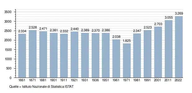 - ↑ Bilancio demografico e popolazione residente per sesso al 31 dicembre 2024. ISTAT. (Bevölkerungsstatistiken des Istituto Nazionale di Statistica, Stand 31. Dezember 2024).