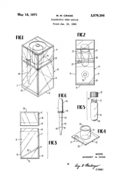 - ↑ Patent US3579306 Diagnostic test device. In: Google Patents. USPTO, Google, abgerufen am 27. August 2014 (englisch).